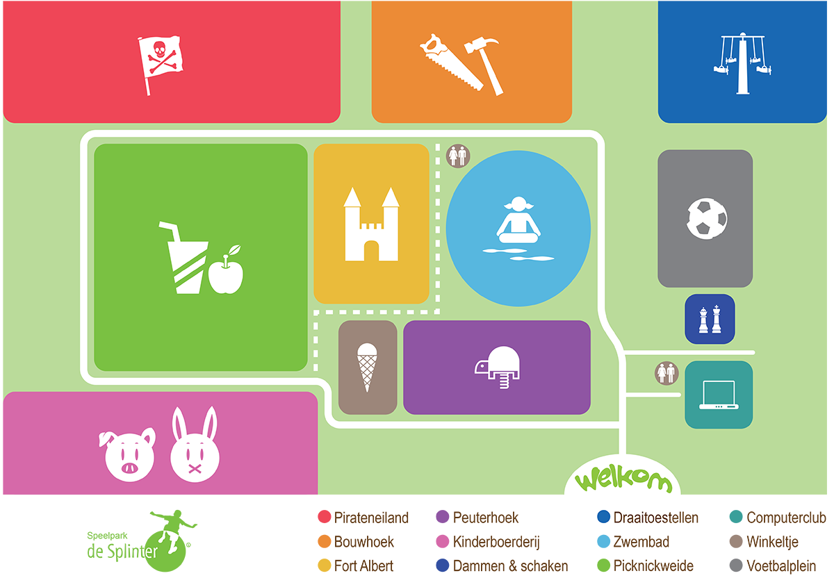 Zie de plattegrond om te zien wat je waar kunt vinden in ons park.